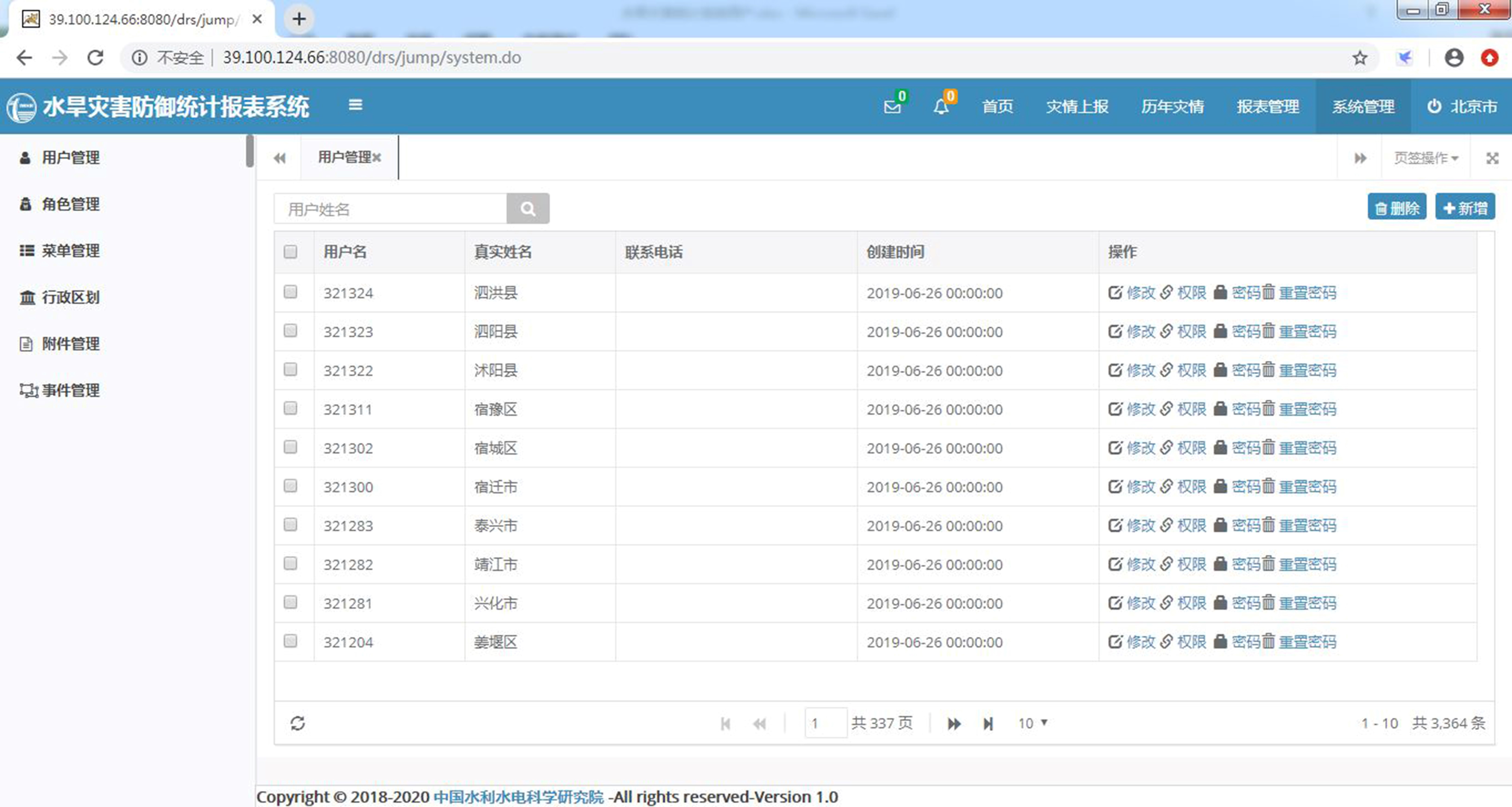 水旱灾害防御统计报表系统